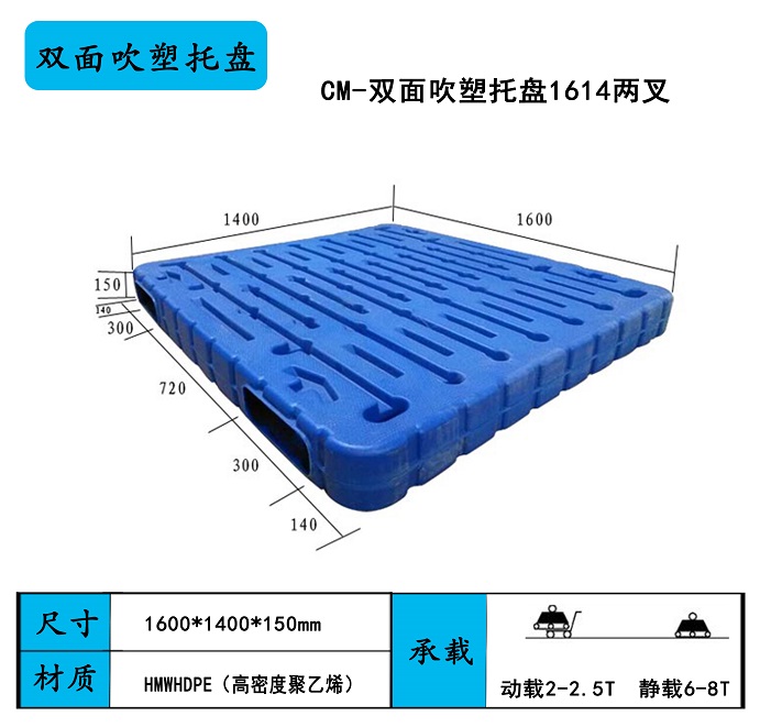 產(chǎn)品描述:1614雙面吹塑托盤,中空塑料托盤1.6*1.4米,重型叉車托盤1614,1.,6*1.4米塑料托盤大型叉車托盤