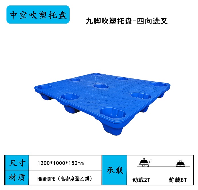 中空吹塑塑料托盤的生產(chǎn)與一般的中空制品吹塑成型方法相類似,因其產(chǎn)品較大,且為雙面型,需要較大的擠出機、合模機及模具等。目前國內(nèi)中空成型機制造廠家已經(jīng)研發(fā)出專業(yè)高速生產(chǎn)高強度吹塑托盤的超大型中空成型機,采用HDPE(低壓高密度聚乙烯)高強度塑料生產(chǎn),成型速度較快,產(chǎn)品質(zhì)量較好,具有高強度、壽命長的特點,一般吹塑托盤的使用壽命可以達(dá)到5~10年,同時可以在-40~70℃的環(huán)境下穩(wěn)定工作。其產(chǎn)品的動載可以達(dá)到3t以上,抗彎強度均是較高的水平。是高強度使用環(huán)境的首選托盤,目前其價格比注塑托盤偏高一些,但其使用壽命特別長,所以它的性價比是所有托盤中最高的。吹塑托盤隨著成型設(shè)備價格的大幅度降低,將會在近年內(nèi)獲得較快的發(fā)展。將對于節(jié)約有限的石油資源與物流成本有極大的好處。